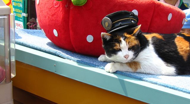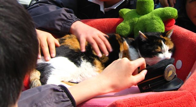 わしゃわしゃしまくられるちょこっと若いたま駅長。