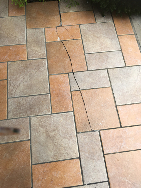 歩いて帰る途中のマンション(ビル)のタイルが割れてたよ。