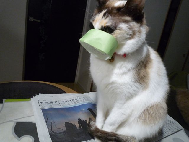 うまくひっかからなかったようで。新型マスク装着失敗、、、、。