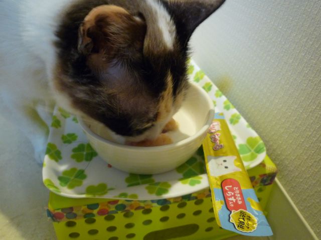 ちゅーるは何度もぐるぐる回って12本ゲット。