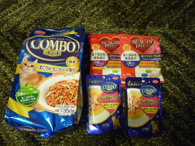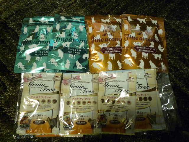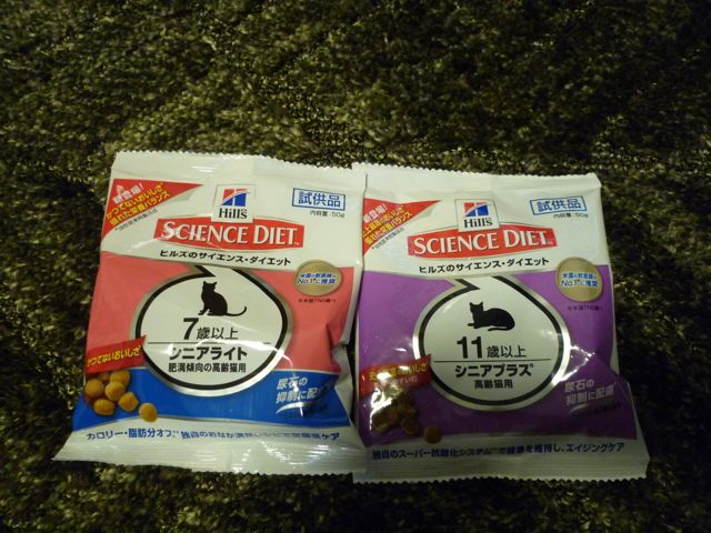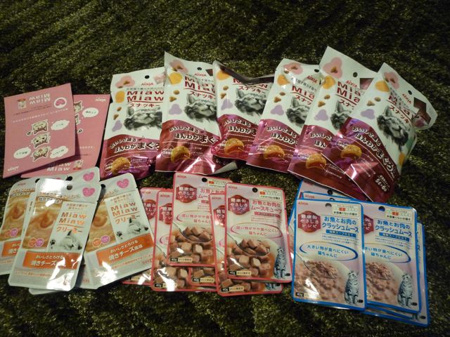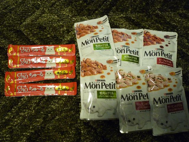 モンプチが配られるとは思いもよらず、3回×2人分で計6個。