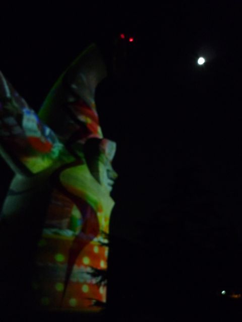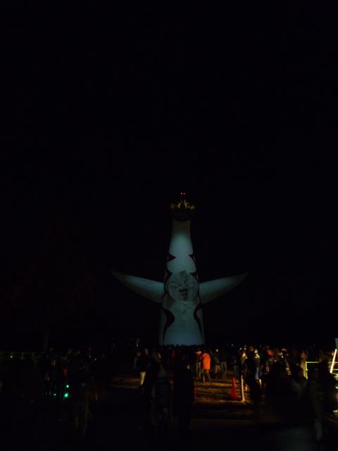 横顔の太陽の塔。月も一緒に。ちょっとブレてるけど。