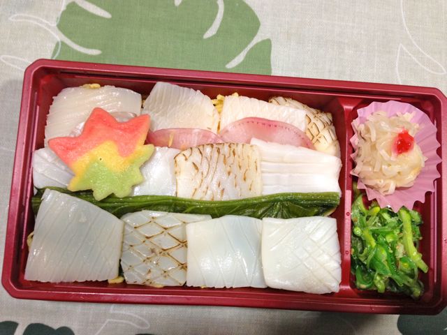 中身はこんな感じ。イカの切り身がずらり並べられてますな。