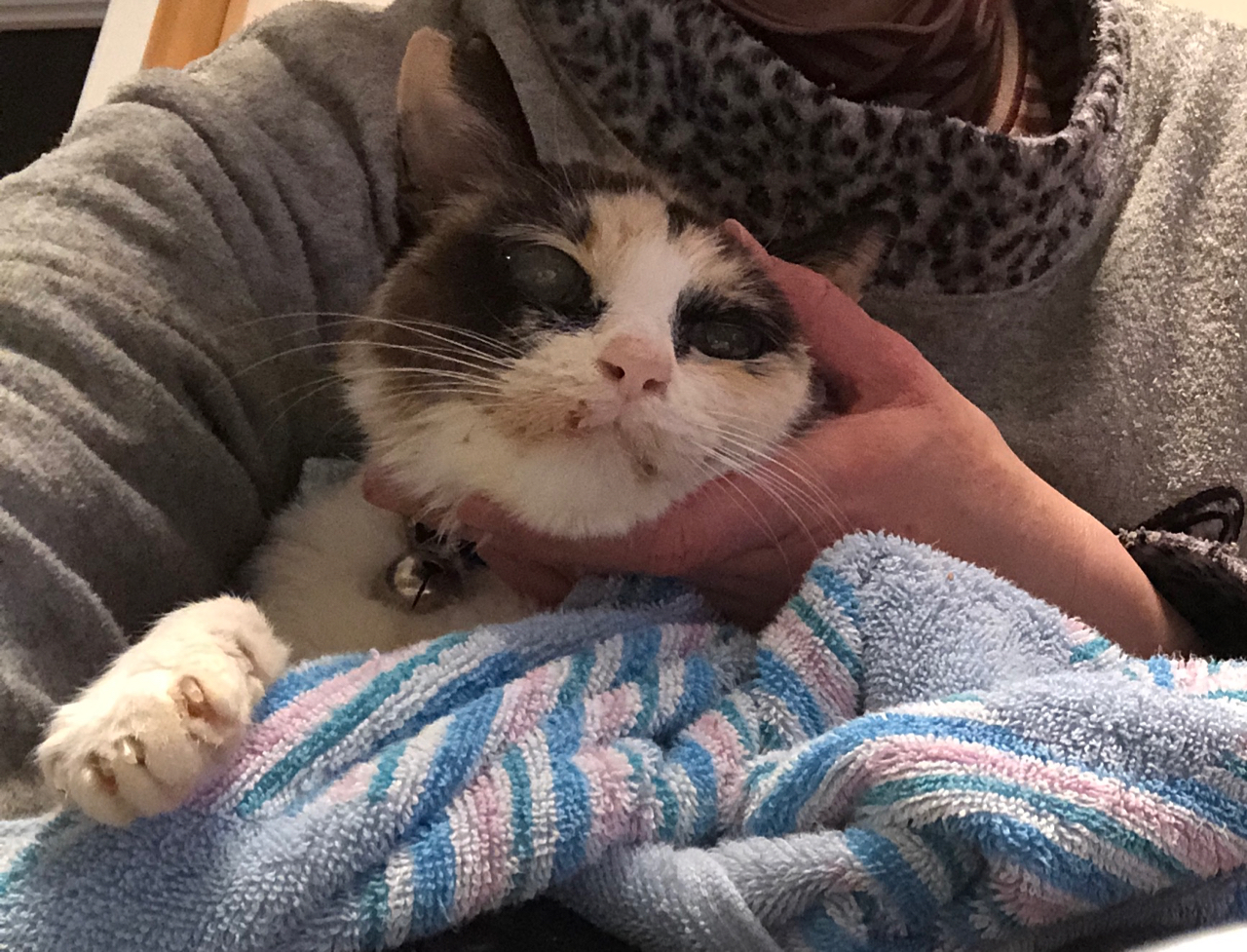 強制給餌のときはバスタオルでぐるぐるまき。