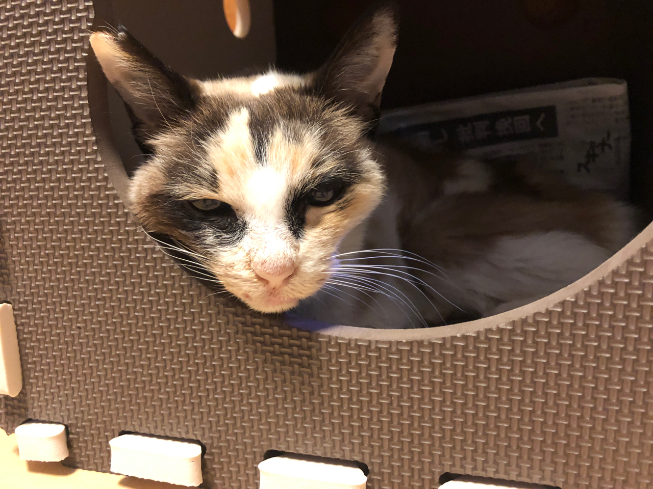 11日午後3時ごろ、寝ていたカゴから起き上がったと思ったら、