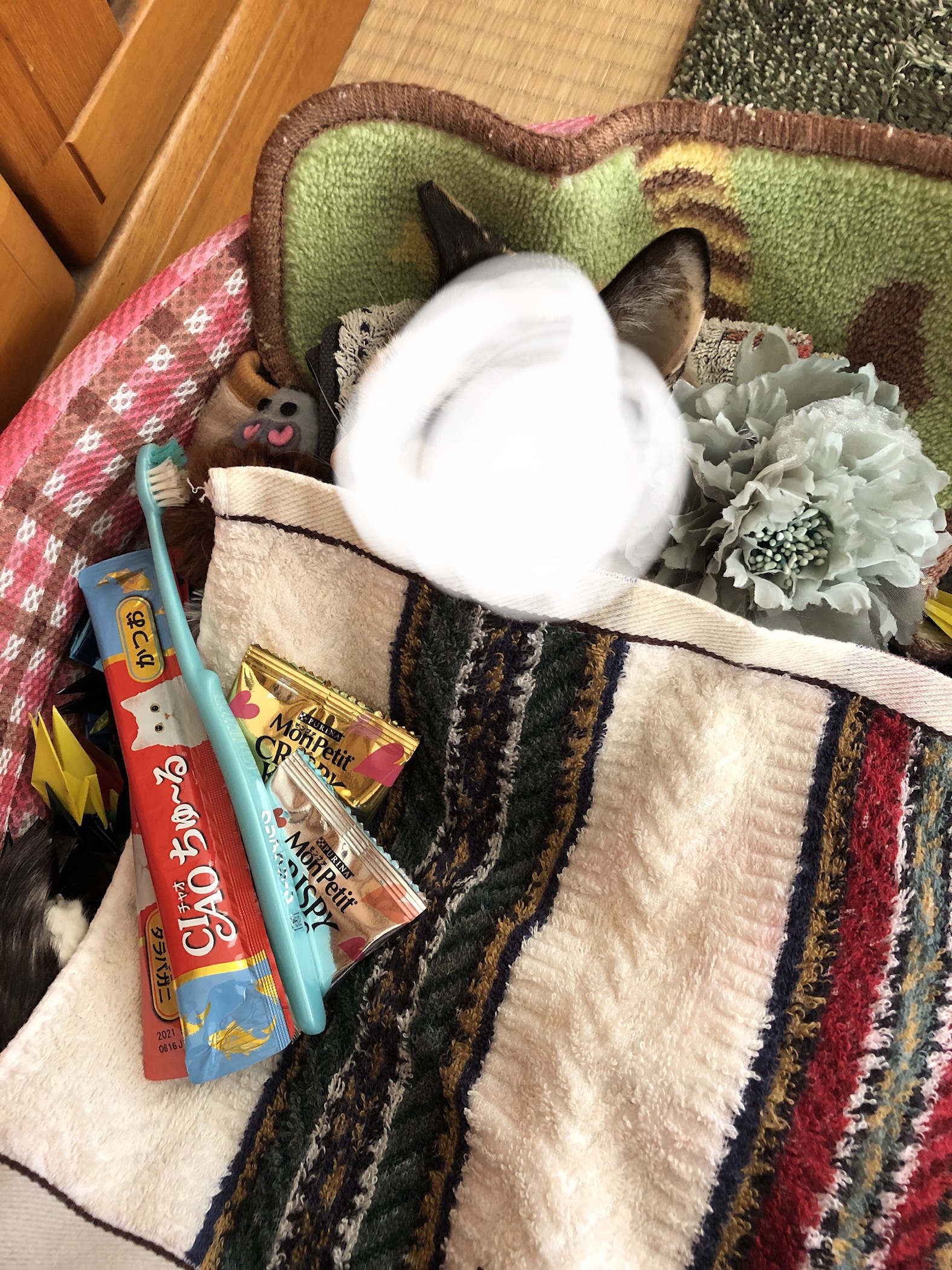 大好きなおやつと歯ブラシとともに。
