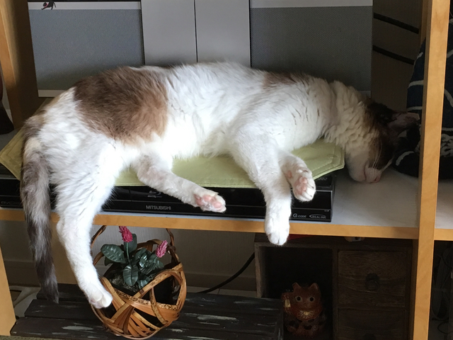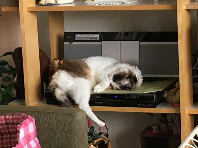 最近マイブームの場所、ブルーレイディスクレコーダーの上で